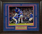 Chicago Cubs - 2016 World Series Champions. Handcrafted in the USA by skilled artisans. Perfectly fitted in a stylish frame to match any room in your home or office. Featuring deluxe Faux Banner Suede and Holiday Red cream core beveled matting. The frame measures 23 x 19 x 1. This collectible is ready to display on your home or office wall today!