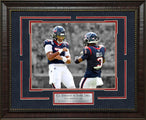 This framed photo features Houston Texans - C.J. Stroud & Tank Dell. Handcrafted in the USA by skilled artisans. Perfectly fitted in a stylish frame to match any room in your home or office. Featuring deluxe Faux Navy Suede and Holiday Red cream core beveled matting. The frame measures 23 x 19 x 1. This collectible is ready to display on your home or office wall today!