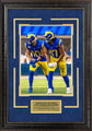 This framed photo features Cooper Kupp and Puka Nacua - Los Angeles Rams. Handcrafted in the USA by skilled artisans. Perfectly fitted in a stylish frame to match any room in your home or office. Featuring deluxe Faux Banner Suede and Gold Rush cream core beveled matting. The frame measures 18 x 25.5 x 1. This collectible is ready to display on your home or office wall today!