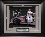 This framed photo features Dale Earnhardt Spotlight with Facsimile Signature. Handcrafted in the USA by skilled artisans. Perfectly fitted in a stylish frame to match any room in your home or office. Featuring deluxe Faux Oxford Suede and Tru Black cream core beveled matting. The frame measures 23 x 19 x 1. This collectible is ready to display on your home or office wall today!