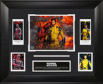 This framed photo features Deadpool and Wolverine with Facsimile Signatures, Replica Tickets, and two Limited Cards. Handcrafted in the USA by skilled artisans and includes replica tickets and a limited-edition Gold Refractor card, each designed by Thomas Maxwell, limited to only 25 cards, and comes with a certificate of authenticity. Perfectly fitted in a stylish frame to match any room in your home or office. Featuring deluxe Focus Suede and Frosty White cream core beveled matting. The frame measures 23 x 19 x 1. This collectible is ready to display on your home or office wall today!