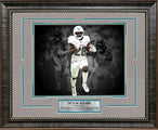 This framed photo features DeVon Achane - Miami Dolphins. Handcrafted in the USA by skilled artisans. Perfectly fitted in a stylish frame to match any room in your home or office. Featuring deluxe Faux Oxford Suede and Coastal Blue cream core beveled matting. The frame measures 23 x 19 x 1. This collectible is ready to display on your home or office wall today!