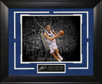 This framed photo features Dirk Nowitzki - Dallas Mavricks - With a Facsimile Signature Plate. Handcrafted in the USA by skilled artisans. Perfectly fitted in a stylish frame to match any room in your home or office. Featuring deluxe Faux Banner Suede and Frosty White cream core beveled matting. The frame measures 23 x 19 x 1. This collectible is ready to display on your home or office wall today!