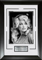 This framed photo features Dolly Parton. Handcrafted in the USA by skilled artisans. Perfectly fitted in a stylish frame to match any room in your home or office. Featuring deluxe Frosty White and Tru Black cream core beveled matting. The frame measures 18 x 25.5 x 1. This collectible is ready to display on your home or office wall today!