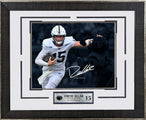 This framed photo features Drew Allar - Penn State Spotlight with Facsimile Signature. Handcrafted in the USA by skilled artisans. Perfectly fitted in a stylish frame to match any room in your home or office. Featuring deluxe Frosty White and Navy cream core beveled matting. The frame measures 23 x 19 x 1. This collectible is ready to display on your home or office wall today!