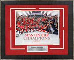 This framed photo features the Florida Panthers - Back-to-Back Stanley Cup Champions. Handcrafted in the USA by skilled artisans. Perfectly fitted in a stylish frame to match any room in your home or office. Featuring deluxe Faux Holiday Red Suede and Frosty White cream core beveled matting. The frame measures 23 x 19 x 1. This collectible is ready to display on your home or office wall today!