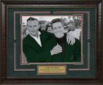 This framed photo features Gary Player with Green Jackets. Handcrafted in the USA by skilled artisans. Perfectly fitted in a stylish frame to match any room in your home or office. Featuring deluxe Faux Zucchini Suede and Sienna cream core beveled matting. The frame measures 23 x 19 x 1. This collectible is ready to display on your home or office wall today!