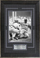 This framed photo features Jackie Robinson. Handcrafted in the USA by skilled artisans. Perfectly fitted in a stylish frame to match any room in your home or office. Featuring deluxe Focus Suede and Navy cream core beveled matting. The frame measures 18 x 25.5 x 1. This collectible is ready to display on your home or office wall today!