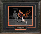 This framed photo features Jalen Brunson - New York Knicks - Spotlight with Facsimile Signature. Handcrafted in the USA by skilled artisans. Perfectly fitted in a stylish frame to match any room in your home or office. Featuring deluxe Focus Suede and Pumpkin cream core beveled matting. The frame measures 23 x 19 x 1. This collectible is ready to display on your home or office wall today!