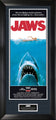 This framed photo features Jaws Replica Movie Poster - Large Wall Decor. Handcrafted in the USA by skilled artisans. Perfectly fitted in a stylish frame to match any room in your home or office. Featuring deluxe Faux Navy Suede and Frosty White cream core beveled matting. The frame measures 19 x 41 x 1. This collectible is ready to display on your home or office wall today!