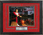 This framed photo features Jim Valvano with a Facsimile Signature. Handcrafted in the USA by skilled artisans. Perfectly fitted in a stylish frame to match any room in your home or office. Featuring deluxe Faux Holiday Red Suede and Tru Black cream core beveled matting. The frame measures 23 x 19 x 1. This collectible is ready to display on your home or office wall today!