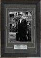 This framed photo features  Johnny Cash - Outside Folsom Prison. Handcrafted in the USA by skilled artisans. Perfectly fitted in a stylish frame to match any room in your home or office. Featuring deluxe Faux Bar Harbor Suede and Tru Black cream core beveled matting. The frame measures 18 x 25.5 x 1. This collectible is ready to display on your home or office wall today!