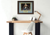 This framed photo features Justin Herbert - San Diego Chargers - Spotlight. Handcrafted in the USA by skilled artisans. Perfectly fitted in a stylish frame to match any room in your home or office. Featuring deluxe Soft Blue and Gold Rush cream core beveled matting. The frame measures 18 x 25.5 x 1. This collectible is ready to display on your home or office wall today!