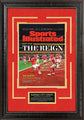 This framed photo features Kansas City Chiefs - LVIII Super Bowl Champions - Si Cover. Handcrafted in the USA by skilled artisans. Perfectly fitted in a stylish frame to match any room in your home or office. It features deluxe faux cherry red suede and gold rush cream core beveled matting. The frame measures 18 x 25.5 x 1. This collectible is ready to display on your home or office wall today!