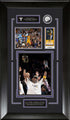 This framed photo features Kobe Bryant - Los Angeles Lakers - Last Game with Replica Ticket and Commemorative Lakers Coin. Handcrafted in the USA by skilled artisans. Perfectly fitted in a stylish frame to match any room in your home or office. Featuring deluxe Focus Suede and Purple cream core beveled matting. The frame measures 18 x 31 x 1. This collectible is ready to display on your home or office wall today!