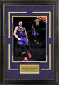 This framed photo features L.A. Luka and The King - Los Angeles Lakers Spotlight. Handcrafted in the USA by skilled artisans. Perfectly fitted in a stylish frame to match any room in your home or office. Featuring deluxe Faux Purple Suede and Gold Rush core beveled matting. The frame measures 18 x 25.5 x 1. This collectible is ready to display on your home or office wall today!