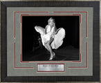 This framed photo features Marilyn Monroe - White Dress - Seven Year Itch. Handcrafted in the USA by skilled artisans. Perfectly fitted in a stylish frame to match any room in your home or office. Featuring deluxe Faux Oxford Suede and Sienna cream core beveled matting. The frame measures 23 x 19 x 1. This collectible is ready to display on your home or office wall today!