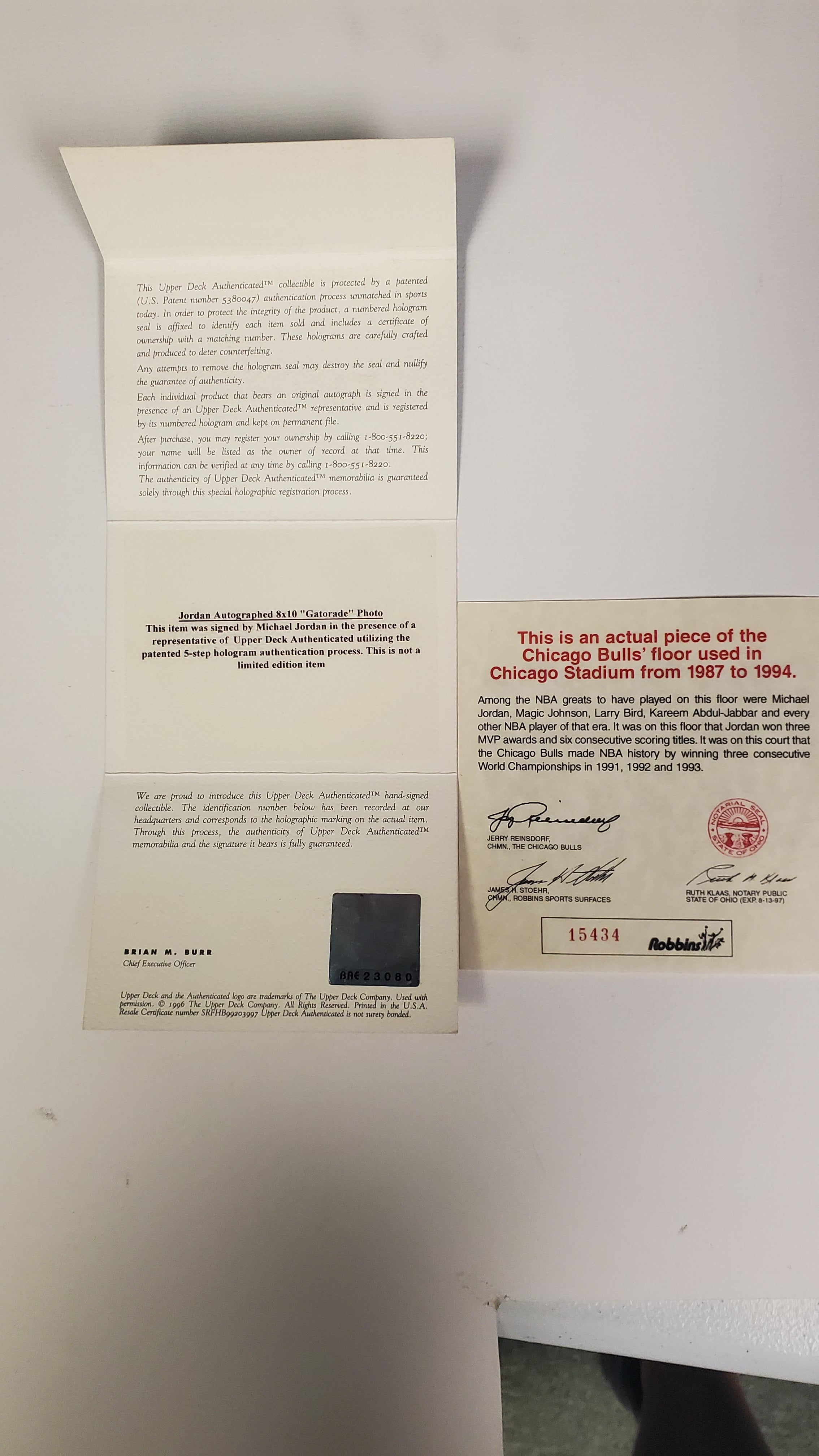 Michael Jordan Framed Autographed Picture with Authentic Chicago Bulls Floor Piece - SOLD!
