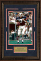 This framed photo features Pat Sullivan - Auburn. Handcrafted in the USA by skilled artisans. Perfectly fitted in a stylish frame to match any room in your home or office. Featuring deluxe Faux Navy Suede and Pumpkin cream core beveled matting. The frame measures 18 x 25.5 x 1. This collectible is ready to display on your home or office wall today!