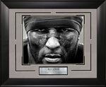 This framed photo features Ray Lewis - Baltimore Ravens - Brickwall. Handcrafted in the USA by skilled artisans. Perfectly fitted in a stylish frame to match any room in your home or office. Featuring deluxe Faux Oxford Suede and Tru Black cream core beveled matting. The frame measures 23 x 19 x 1. This collectible is ready to display on your home or office wall today!