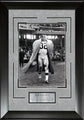 This framed photo features Jim Brown. Handcrafted in the USA by skilled artisans. Perfectly fitted in a stylish frame to match any room in your home or office. Featuring deluxe Faux Oxford Suede and Tru Black cream core beveled matting. The frame measures 18 x 25.5 x 1. This collectible is ready to display on your home or office wall today!