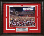 This framed photo features Arkansas vs Tennessee - Down Goes Rocky Top. Handcrafted in the USA by skilled artisans. Perfectly fitted in a stylish frame to match any room in your home or office. Featuring deluxe Faux Holiday Red Suede and Frosty White cream core beveled matting. The frame measures 23 x 19 x 1. This collectible is ready to display on your home or office wall today!