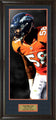This framed photo features Von Miller - Denver Broncos - Large Wall Decor. Handcrafted in the USA by skilled artisans. Perfectly fitted in a stylish frame to match any room in your home or office. Featuring deluxe Faux Navy Suede and Pumpkin cream core beveled matting. The frame measures 19 x 41 x 1. This collectible is ready to display on your home or office wall today!
