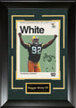 This framed photo features Reggie White - Green Bay Packers - Mid-Century Art. Handcrafted in the USA by skilled artisans. Perfectly fitted in a stylish frame to match any room in your home or office. Featuring deluxe Faux Zucchini Suede and Gold Rush cream core beveled matting. The frame measures 18 x 25.5 x 1. This collectible is ready to display on your home or office wall today!