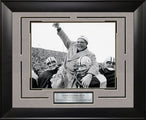 This framed photo features Vince Lombardi - Green Bay Packers - Winners Never Quit. Handcrafted in the USA by skilled artisans. Perfectly fitted in a stylish frame to match any room in your home or office. Featuring deluxe Faux Oxford Suede and Tru Black cream core beveled matting. The frame measures 23 x 19 x 1. This collectible is ready to display on your home or office wall today!