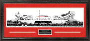 This framed photo features the Kansas City Chiefs - Arrowhead Stadium Panorama. Handcrafted in the USA by skilled artisans. Perfectly fitted in a stylish frame to match any room in your home or office. Featuring deluxe Faux Cherry Red Suede and Frosty White cream core beveled matting. The frame measures 41 x 19 x 1. This collectible is ready to display on your home or office wall today!