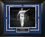 This framed photo features Clayton Kershaw - Los Angeles Dodgers - Spotlight. Handcrafted in the USA by skilled artisans. Perfectly fitted in a stylish frame to match any room in your home or office. Featuring deluxe Faux Banner Suede and Frosty White cream core beveled matting. The frame measures 23 x 19 x 1. This collectible is ready to display on your home or office wall today!