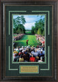 This framed photo features Tiger Woods - 2001 Masters - Tee On the 18th Hole . Handcrafted in the USA by skilled artisans. Perfectly fitted in a stylish frame to match any room in your home or office. Featuring deluxe Faux Zucchini Suede and Emerald cream core beveled matting. The frame measures 18 x 25.5 x 1. This collectible is ready to display on your home or office wall today!