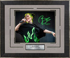 This framed photo features Billie Eilish Spotlight with Facsimile Signature. Handcrafted in the USA by skilled artisans. Perfectly fitted in a stylish frame to match any room in your home or office. Featuring deluxe Faux Oxford Suede and Tru Black cream core beveled matting. The frame measures 23 x 19 x 1. This collectible is ready to display on your home or office wall today!