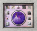 Celebrate the incredible career of Taylor Swift with this beautifully framed drum head featuring her replica signature and "The Eras Tour" imagery. Order now and add a touch of elegance and pop culture history to your space with this exceptional piece of memorabilia.