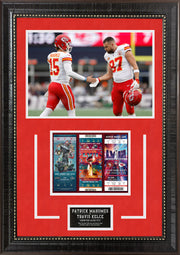 Patrick Mahomes and Travis Kelce with Three Replica Super Bowl Tickets
