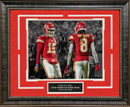 This framed photo features Patrick Mahomes and Deandre Hopkins - Kansas City Chiefs - Spotlight. Handcrafted in the USA by skilled artisans. Perfectly fitted in a stylish frame to match any room in your home or office. Featuring deluxe Faux Cherry Suede and Frosty White cream core beveled matting. The frame measures 18 x 25.5 x 1. This collectible is ready to display on your home or office wall today!