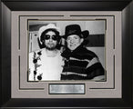 This framed photo features Bob Dylan and Willie Nelson. Handcrafted in the USA by skilled artisans. Perfectly fitted in a stylish frame to match any room in your home or office. Featuring deluxe Faux Oxford Suede and Tru Black cream core beveled matting. The frame measures 23 x 19 x 1. This collectible is ready to display on your home or office wall today!