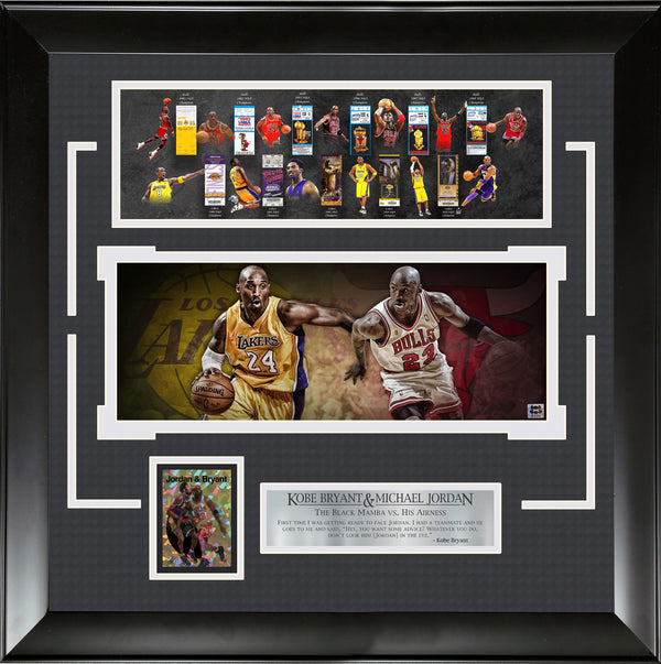 Celebrate the legends of the game with this extraordinary collectible featuring Kobe Bryant and Michael Jordan. This exclusive item includes replica NBA tickets for each player and their respective teams, commemorating their iconic careers.