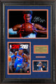 This framed photo features Shai Gilgeous-Alexander - OKC Thunder - NBA 2K26 with Facsimile Signature. Handcrafted in the USA by skilled artisans. Perfectly fitted in a stylish frame to match any room in your home or office. Featuring deluxe Faux Banner Suede and Pumpkin cream core beveled matting. The frame measures 18 x 25.5 x 1. This collectible is ready to display on your home or office wall today!