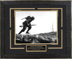 This framed photo features Assault on Normandy. Handcrafted in the USA by skilled artisans. Perfectly fitted in a stylish frame to match any room in your home or office. Featuring deluxe Focus Suede and Palazzo cream core beveled matting. The frame measures 23 x 19 x 1. This collectible is ready to display on your home or office wall today!