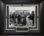 This framed photo features Cleveland Summit - June 4th, 1967. Handcrafted in the USA by skilled artisans. Perfectly fitted in a stylish frame to match any room in your home or office. Featuring deluxe Focus Suede and Peppered Cream cream core beveled matting. The frame measures 23 x 19 x 1. This collectible is ready to display on your home or office wall today!