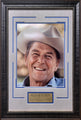 This framed photo features Reagan Cowboy Hat. Handcrafted in the USA by skilled artisans. Perfectly fitted in a stylish frame to match any room in your home or office. Featuring deluxe Faux Oxford Suede and Electric Blue cream core beveled matting. The frame measures 18 x 25.5 x 1. This collectible is ready to display on your home or office wall today!