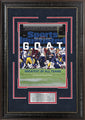 This framed photo features Tom Brady - GOAT - Si Cover. Handcrafted in the USA by skilled artisans. Perfectly fitted in a stylish frame to match any room in your home or office. Featuring deluxe Faux Navy Suede and Holiday Red cream core beveled matting. The frame measures 18 x 25.5 x 1. This collectible is ready to display on your home or office wall today!