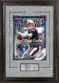This framed photo features Tom Brady - That Good - Si Cover. Handcrafted in the USA by skilled artisans. Perfectly fitted in a stylish frame to match any room in your home or office. Featuring deluxe Faux Oxford Suede and Navy cream core beveled matting. The frame measures 18 x 25.5 x 1. This collectible is ready to display on your home or office wall today!