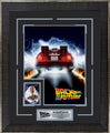 This framed photo features Back to the Future with Dr. Emmett Brown Card. The card is digitally designed by Thomas Maxwell and handcrafted in the USA by skilled artisans. Perfectly fitted in a stylish frame to match any room in your home or office. Featuring deluxe Focus  Suede and Soft Blue cream core beveled matting. The frame measures 19 x 23 x 1. This collectible is ready to display on your home or office wall today!