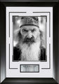 This framed photo features Phil Robertson - Duck Dynasty. Handcrafted in the USA by skilled artisans. Perfectly fitted in a stylish frame to match any room in your home or office. Featuring deluxe Frosty White and Tru Black cream core beveled matting. The frame measures 18 x 25.5 x 1. This collectible is ready to display on your home or office wall today!