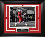 This framed photo features Bri Ellis - Arkansas Razorbacks Softball - Spotlight. Handcrafted in the USA by skilled artisans. Perfectly fitted in a stylish frame to match any room in your home or office. Featuring deluxe Faux Holiday Red Suede and Frosty White cream core beveled matting. The frame measures 23 x 19 x 1. This collectible is ready to display on your home or office wall today!