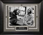 This framed photo features Jerry Garcia & Bob Weir - Grateful Dead. Handcrafted in the USA by skilled artisans. Perfectly fitted in a stylish frame to match any room in your home or office. Featuring deluxe Peppered Cream and Tru Black cream core beveled matting. The frame measures 18 x 17 x 1. This collectible is ready to display on your home or office wall today!