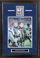 This exceptional piece pays tribute to one of the greatest quarterbacks in NFL history, capturing Staubach's iconic moments with the Dallas Cowboys. Measuring 23 x 19 x 1, the frame is elegantly adorned with luxurious Faux Banner Suede, Frosty White, and Navy matting, exuding sophistication and team pride.