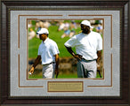 This framed photo features Tiger Woods & Michael Jordan. Handcrafted in the USA by skilled artisans. Perfectly fitted in a stylish frame to match any room in your home or office. Featuring deluxe Faux Oxford Suede and Acorn cream core beveled matting. The frame measures 23 x 19 x 1. This collectible is ready to display on your home or office wall today!